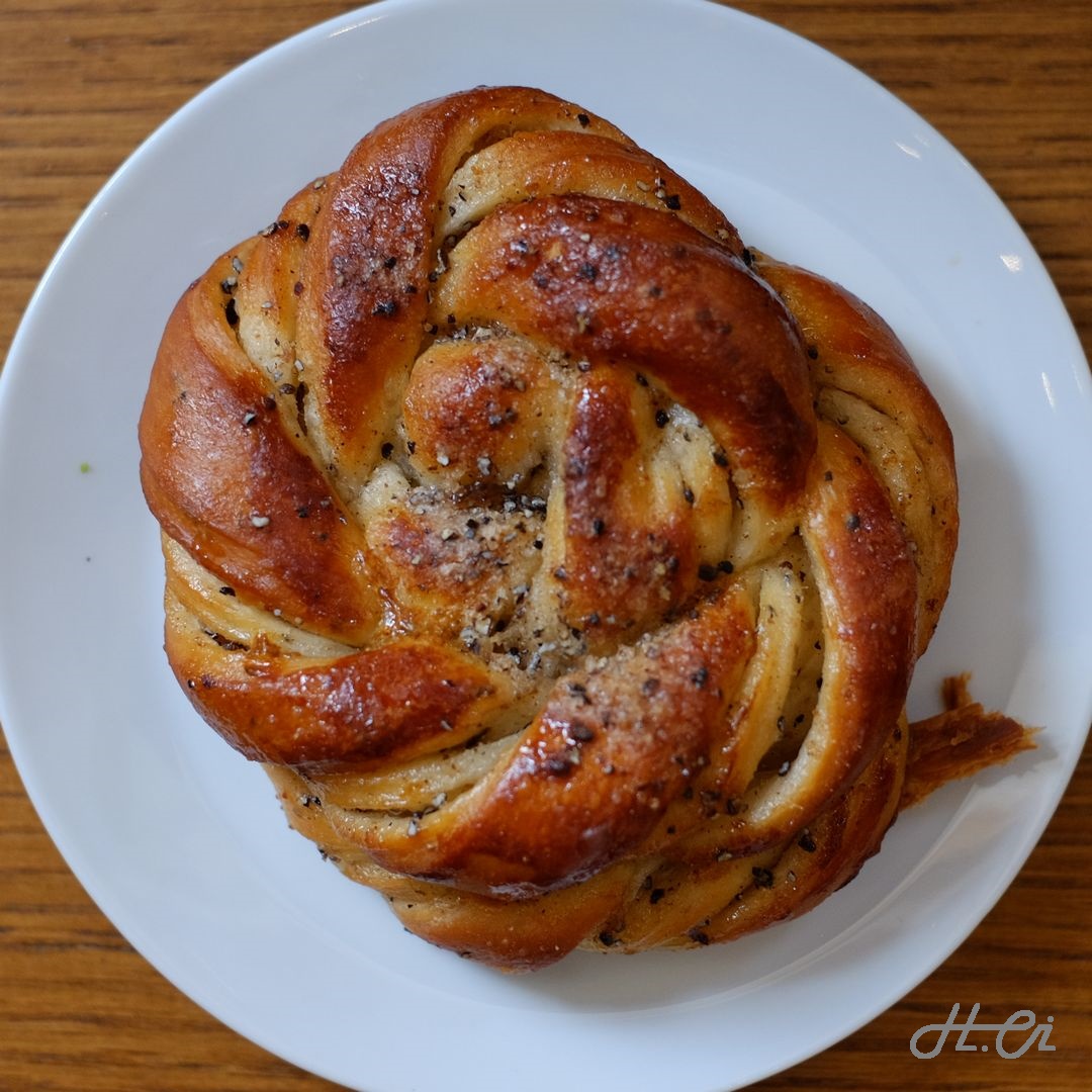 カルダモンロールはストックホルムでは標準的なレベル。生地にはバターがしっかりきいています。使用されている天然酵母の風味か、口に入れるとやや酸味を感じます。それはよいのですが、噛みしめると口の中でややねばつくのがマイナス点でした。