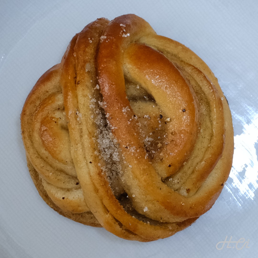 こちらのカルダモンロールは英語では一般的な「カルダモンバンズ」の名称で販売されています。写真を見てもらうと分かるように、本場スウェーデン風の編み込みで、とても美しい仕上がりとなっています。